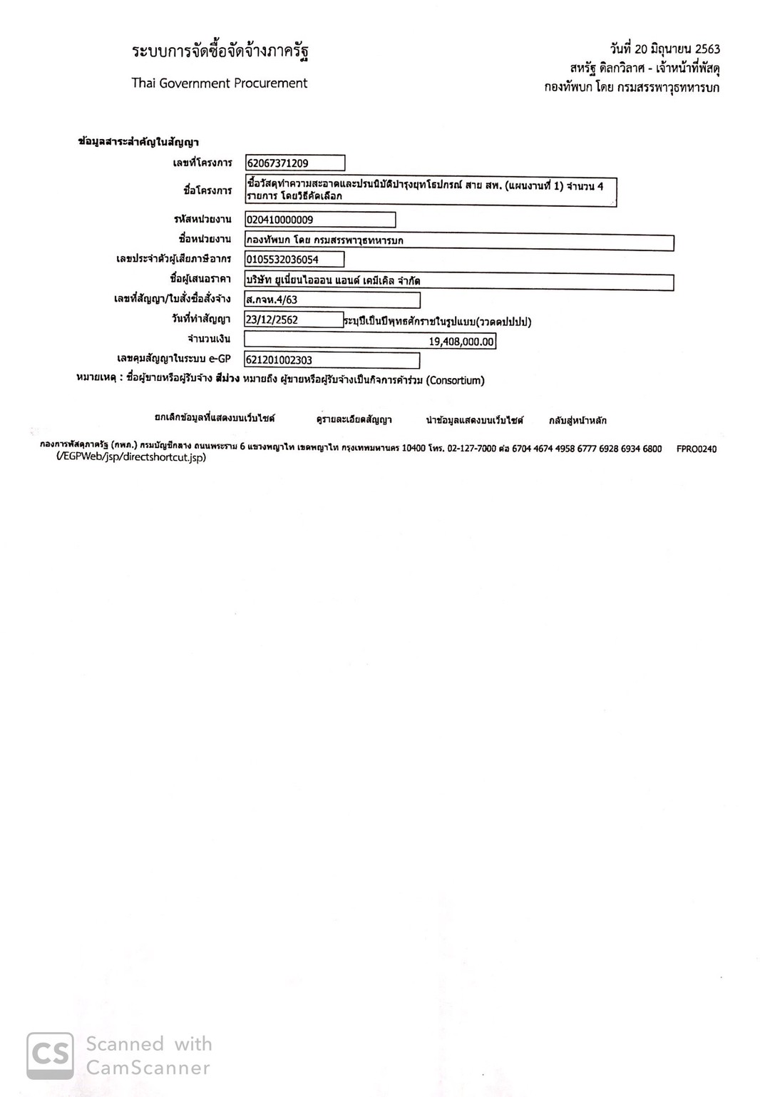 กองทัพบกโดยกรมสรรพาวุธทหารบก ขอประกาศเผยแพร่สาระสำคัญของสัญญาหรือข้อตกลงที่ได้ลงนามแล้วตามเอกสารที่แนบท้ายประกาศนี้