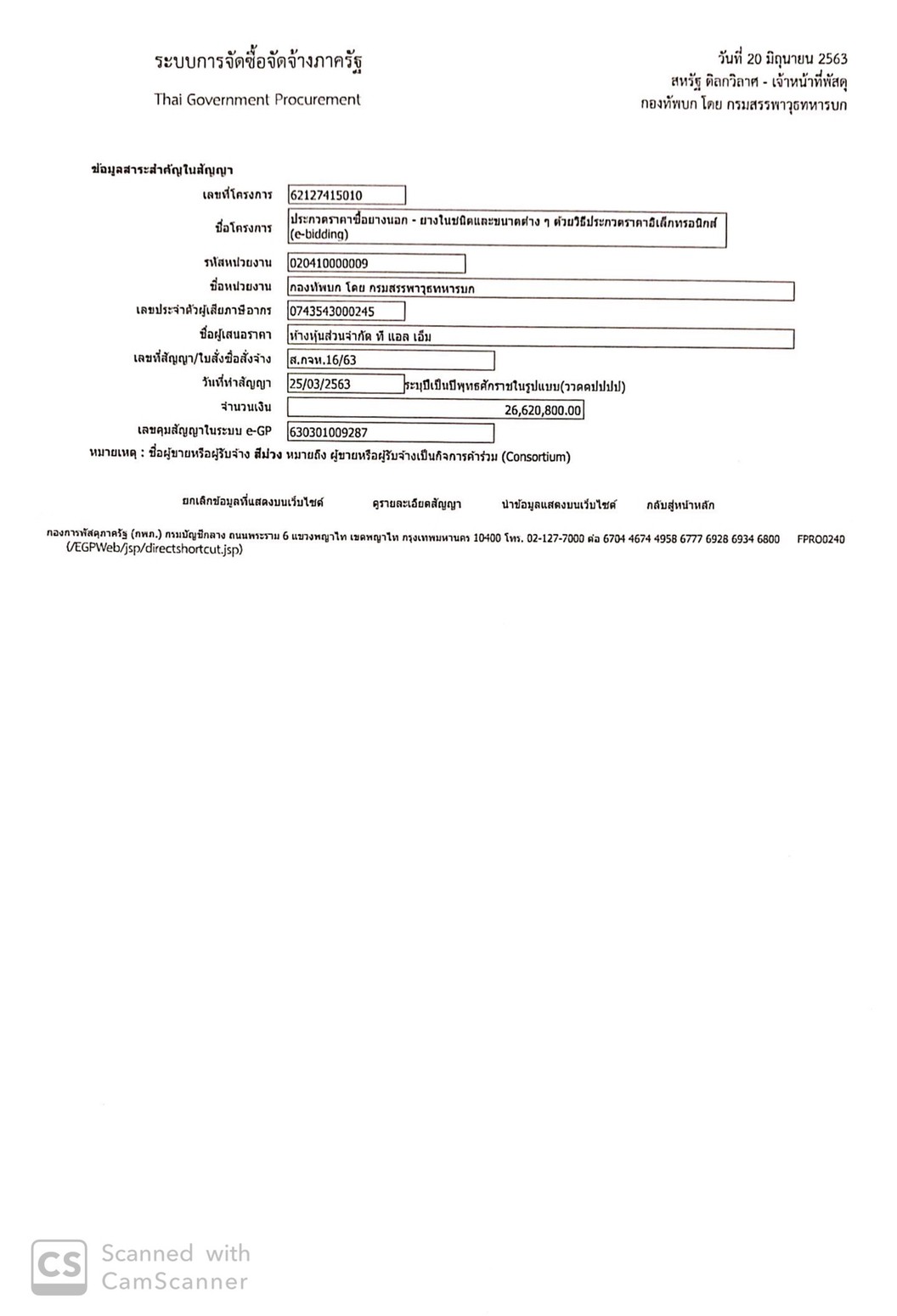 ตามพระราชบัญญัติการจัดซื้อจัดจ้าง และการบริหารพัสดุภาครัฐ พ.ศ. ๒๕๖๐ มาตรา ๙๘ กำหนดให้หน่วยงานของภาครัฐประกาศเผยแพร่สาระสำคัญของสัญญาหรือข้อตกลงที่ได้ลงนามแล้ว รวมทั้งการแก้ไขเปลี่ยนแปลงสัญญาหรือข้อตกลงในระบบเครือข่ายสารสนเทศของกรมบัญชีกลาง และหน่วยงานของรัฐตามที่กรมบัญชีกลางกำหนด