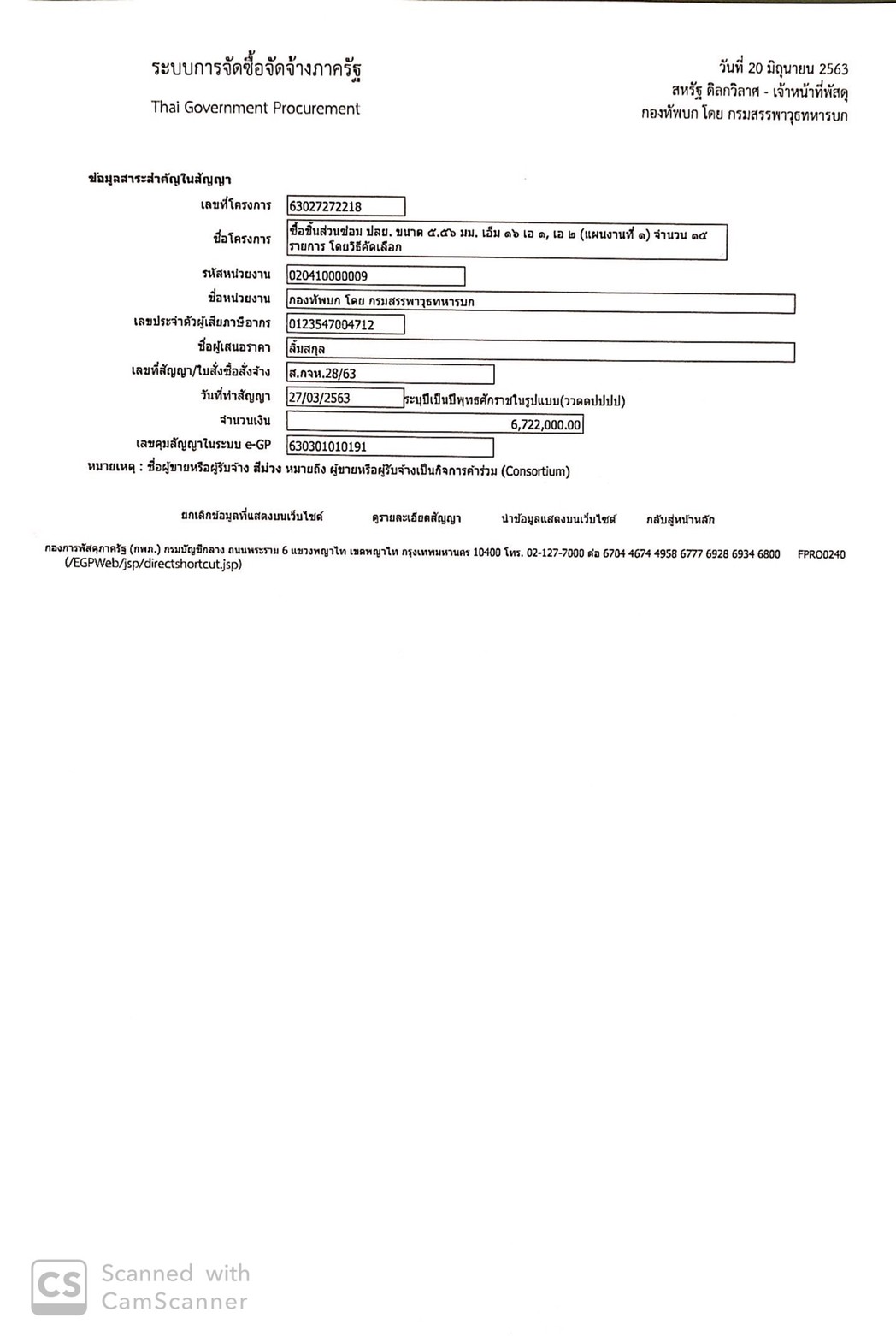 ตามพระราชบัญญัติการจัดซื้อจัดจ้าง และการบริหารพัสดุภาครัฐ พ.ศ. ๒๕๖๐ มาตรา ๙๘ กำหนดให้หน่วยงานของภาครัฐประกาศเผยแพร่สาระสำคัญของสัญญาหรือข้อตกลงที่ได้ลงนามแล้ว รวมทั้งการแก้ไขเปลี่ยนแปลงสัญญาหรือข้อตกลงในระบบเครือข่ายสารสนเทศของกรมบัญชีกลาง และหน่วยงานของรัฐตามที่กรมบัญชีกลางกำหนด
