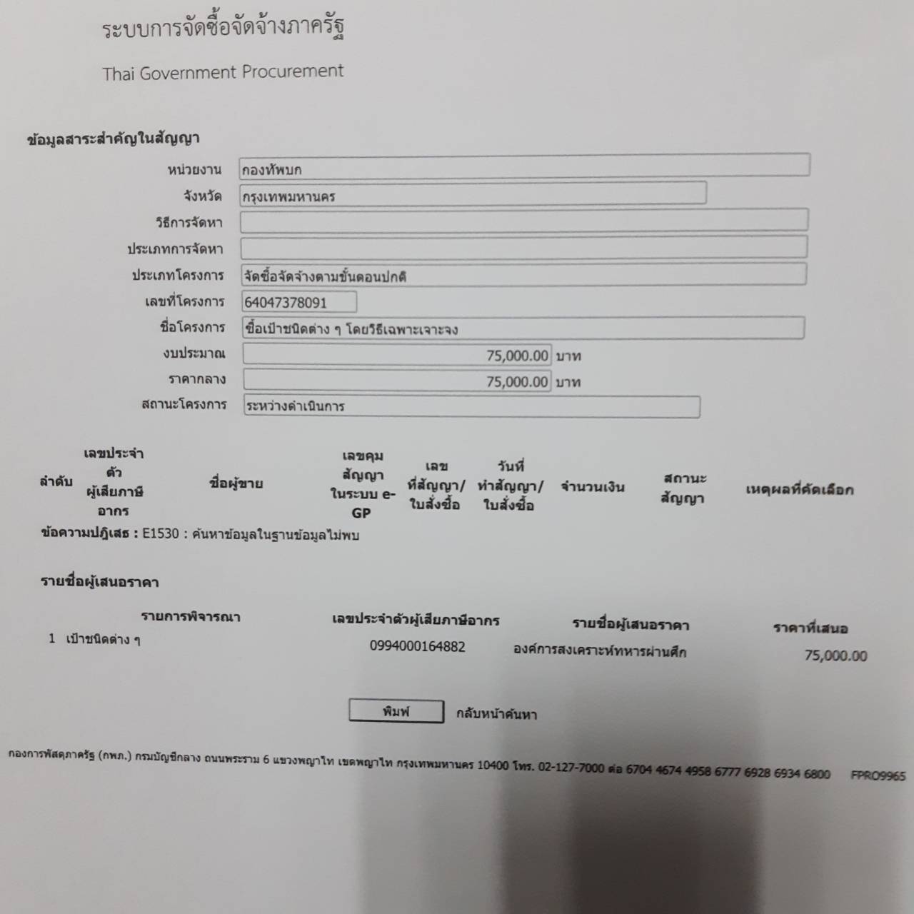 กองทัพบกโดยกรมสรรพาวุธทหารบก ขอประกาศเผยแพร่สาระสำคัญของสัญญาหรือข้อตกลงที่ได้ลงนามแล้วตามเอกสารที่แนบท้ายประกาศนี้