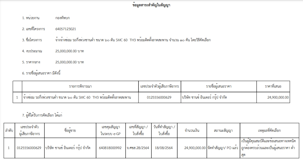 เรื่อง จ้างจ้างซ่อม รถกึ่งพ่วงชานต่ำ ขนาด ๖๐ ตัน SMC 60 TH3 พร้อมติดตั้งลาดสะพาน จำนวน ๑๐ คัน โดยวิธีคัดเลือก