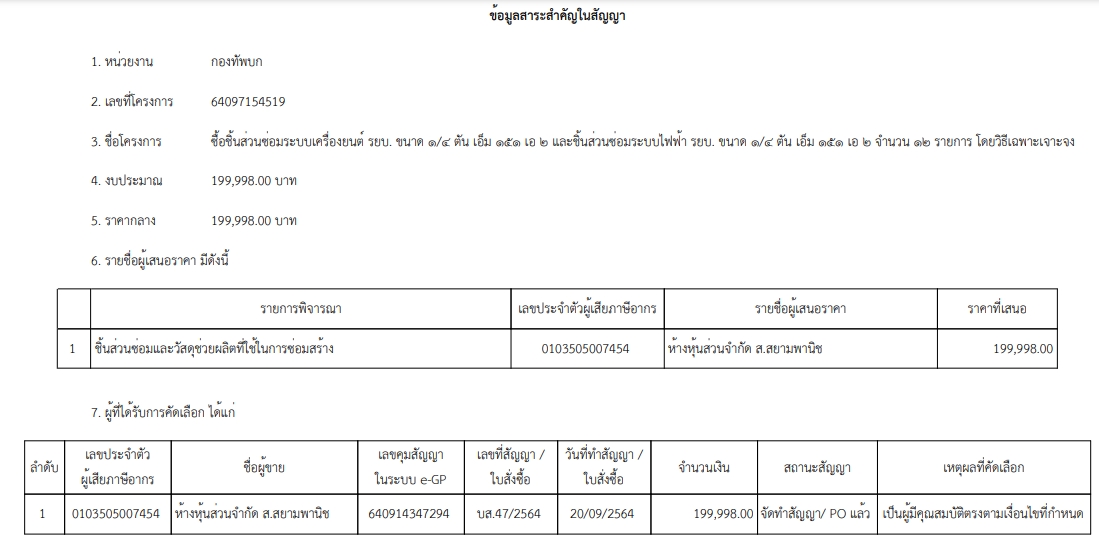 เรื่อง ซื้อชิ้นส่วนซ่อมระบบเครื่องยนต์ รยบ. ขนาด ๑/๔ ตัน เอ็ม ๑๕๑ เอ ๒ และชิ้นส่วนซ่อมระบบไฟฟ้า รยบ. ขนาด ๑/๔ ตัน เอ็ม ๑๕๑ เอ ๒ จำนวน ๑๒ รายการ โดยวิธีเฉพาะเจาะจง