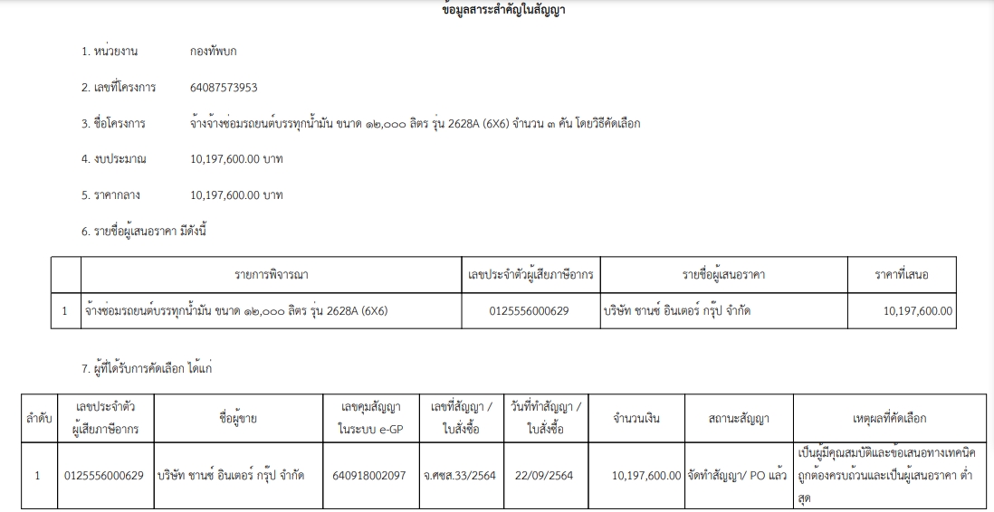 เรื่อง จ้างซ่อมรถยนต์บรรทุกน้ำมัน ขนาด ๑๒,๐๐๐ ลิตร รุ่น 2628A (6X6) จำนวน ๓ คัน โดยวิธีคัดเลือก
