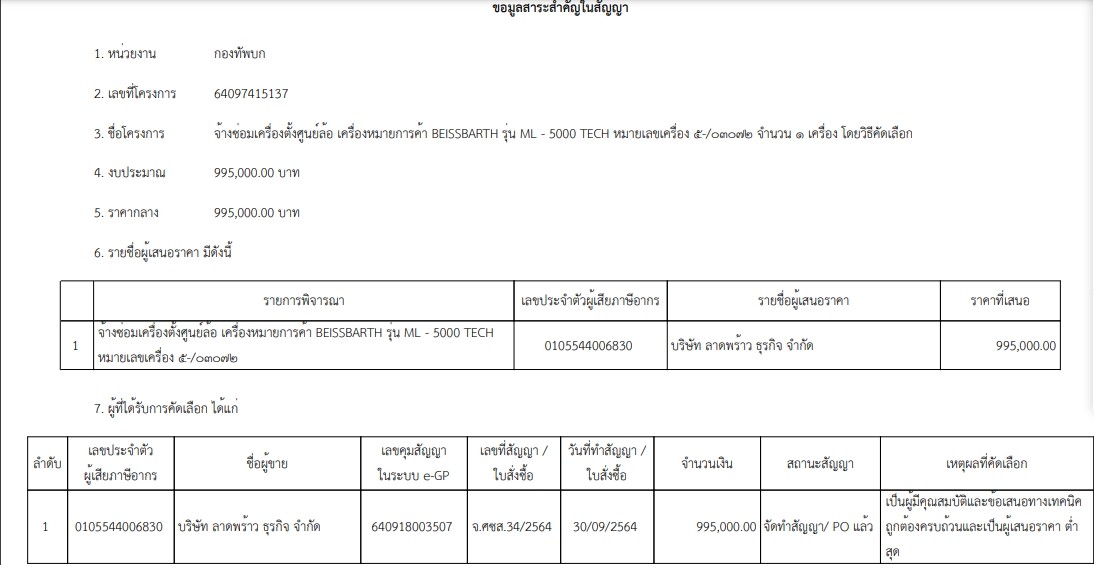 เรื่อง จ้างซ่อมเครื่องตั้งศูนย์ล้อ เครื่องหมายการค้า BEISSBARTH รุ่น ML - 5000 TECH หมายเลขเครื่อง ๕-/๐๓๐๗๒ จำนวน ๑ เครื่อง โดยวิธีคัดเลือก