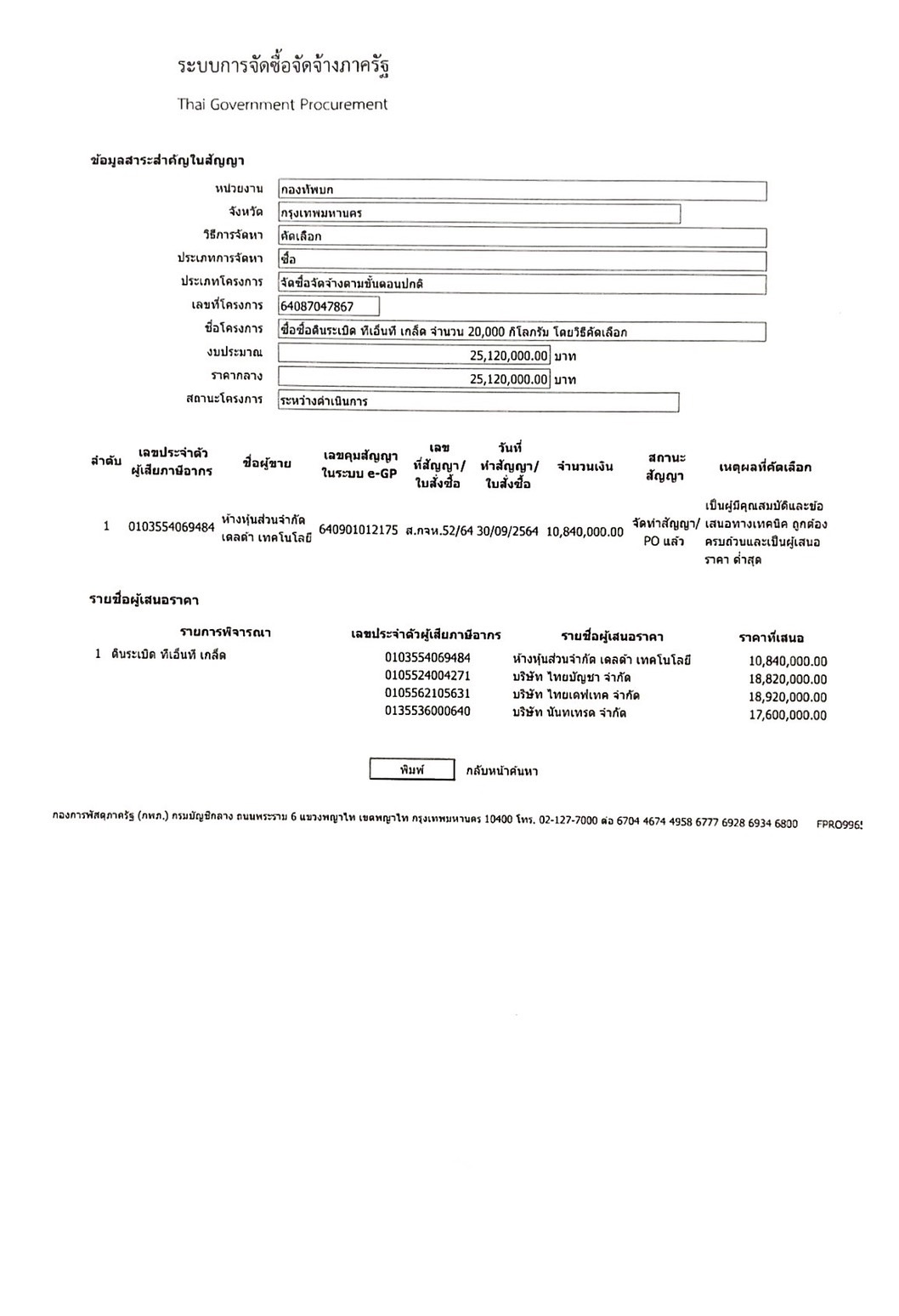 กองทัพบกโดยกรมสรรพาวุธทหารบก ขอประกาศเผยแพร่สาระสำคัญของสัญญาหรือข้อตกลงที่ได้ลงนามแล้วตามเอกสารที่แนบท้ายประกาศนี้