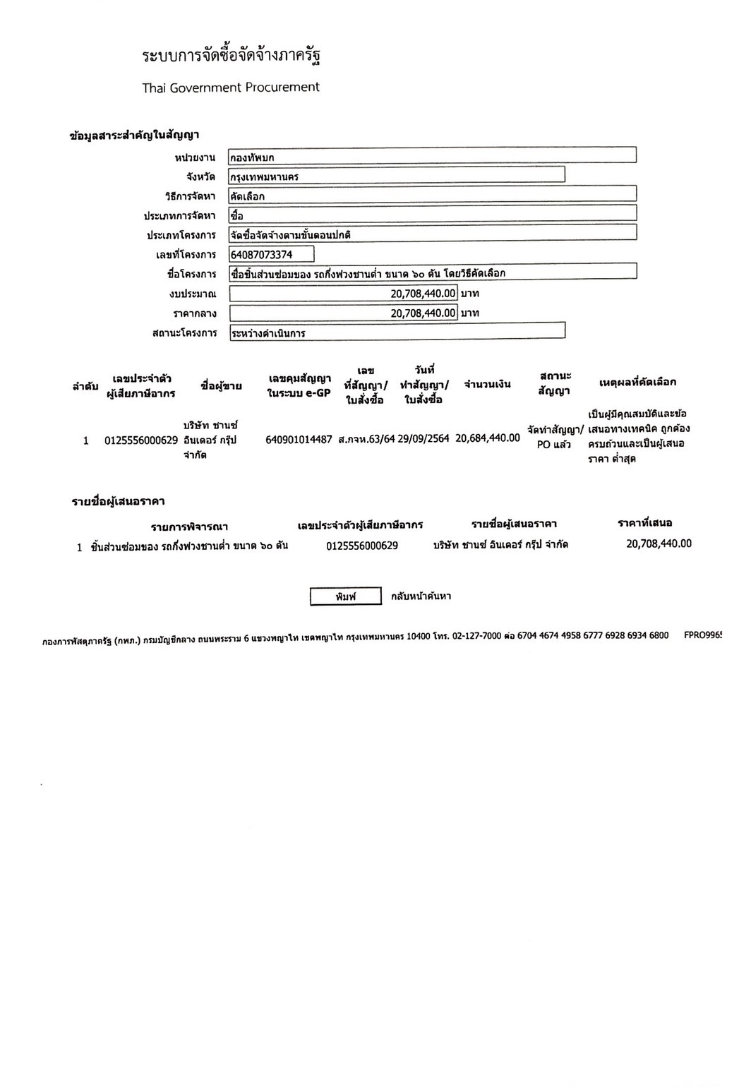 ตามพระราชบัญญัติการจัดซื้อจัดจ้าง และการบริหารพัสดุภาครัฐ พ.ศ. ๒๕๖๐ มาตรา ๙๘ กำหนดให้หน่วยงานของภาครัฐประกาศเผยแพร่สาระสำคัญของสัญญาหรือข้อตกลงที่ได้ลงนามแล้ว รวมทั้งการแก้ไขเปลี่ยนแปลงสัญญาหรือข้อตกลงในระบบเครือข่ายสารสนเทศของกรมบัญชีกลาง และหน่วยงานของรัฐตามที่กรมบัญชีกลางกำหนด