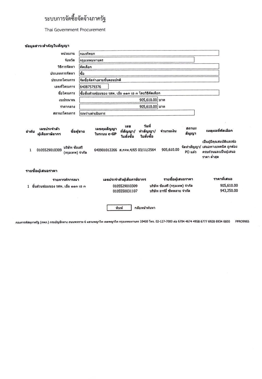 กองทัพบกโดยกรมสรรพาวุธทหารบก ขอประกาศเผยแพร่สาระสำคัญของสัญญาหรือข้อตกลงที่ได้ลงนามแล้วตามเอกสารที่แนบท้ายประกาศนี้