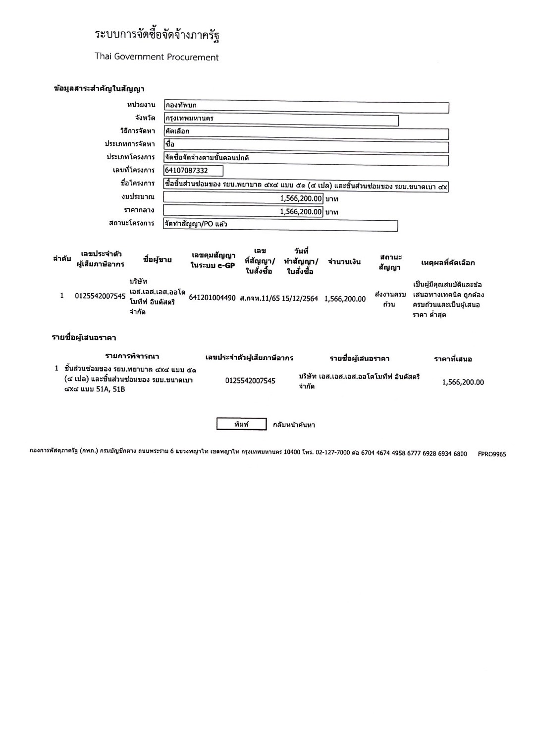 กองทัพบกโดยกรมสรรพาวุธทหารบก ขอประกาศเผยแพร่สาระสำคัญของสัญญาหรือข้อตกลงที่ได้ลงนามแล้วตามเอกสารที่แนบท้ายประกาศนี้