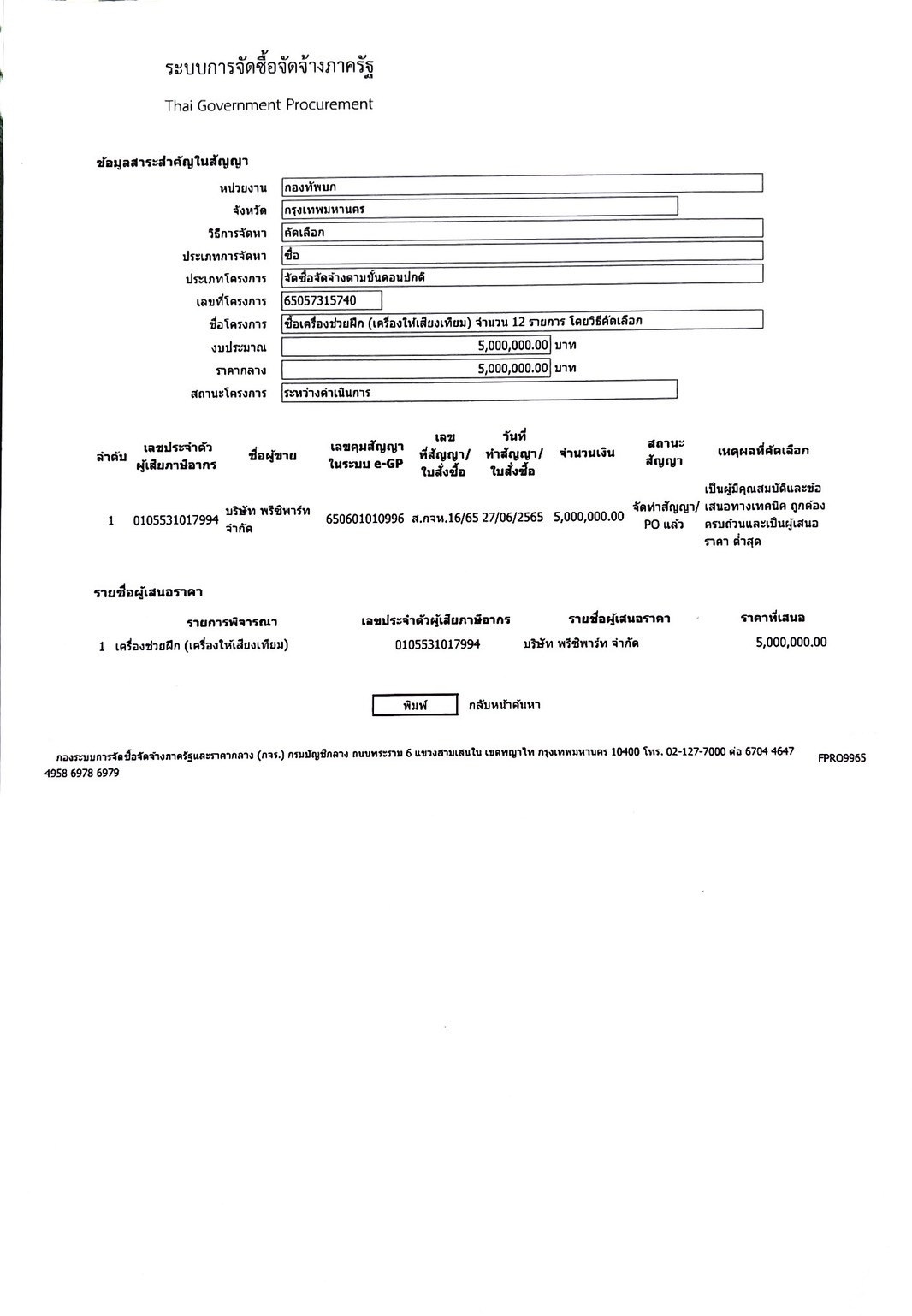 กองทัพบกโดยกรมสรรพาวุธทหารบก ขอประกาศเผยแพร่สาระสำคัญของสัญญาหรือข้อตกลงที่ได้ลงนามแล้วตามเอกสารที่แนบท้ายประกาศนี้