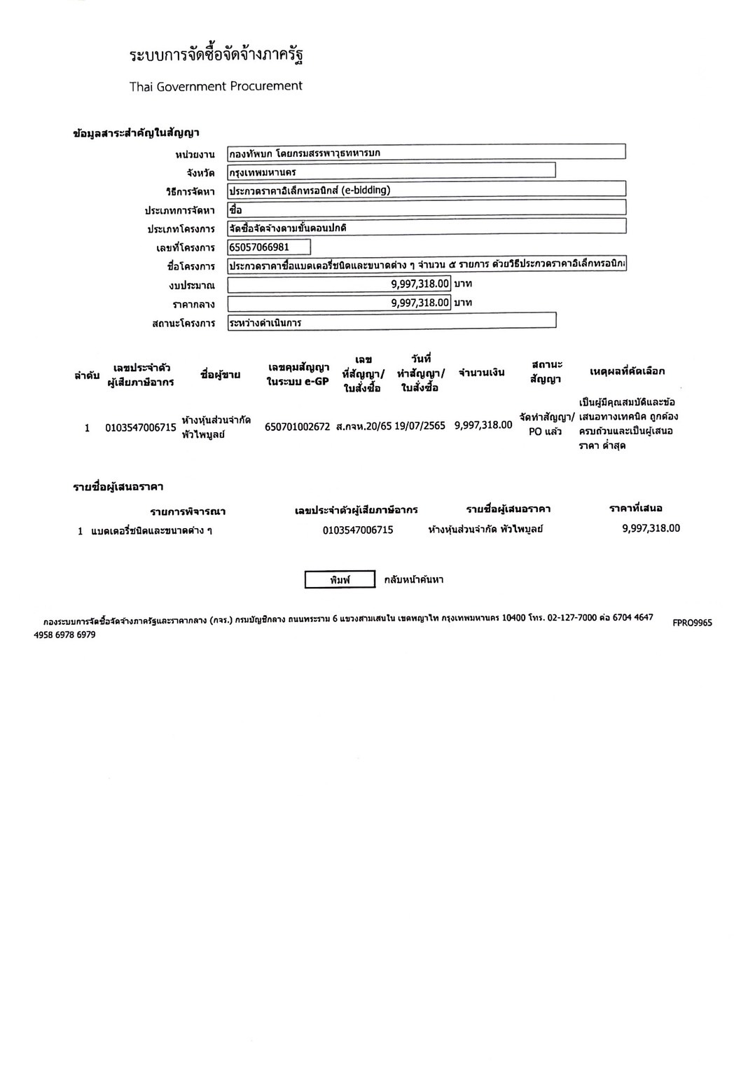 กองทัพบกโดยกรมสรรพาวุธทหารบก ขอประกาศเผยแพร่สาระสำคัญของสัญญาหรือข้อตกลงที่ได้ลงนามแล้วตามเอกสารที่แนบท้ายประกาศนี้