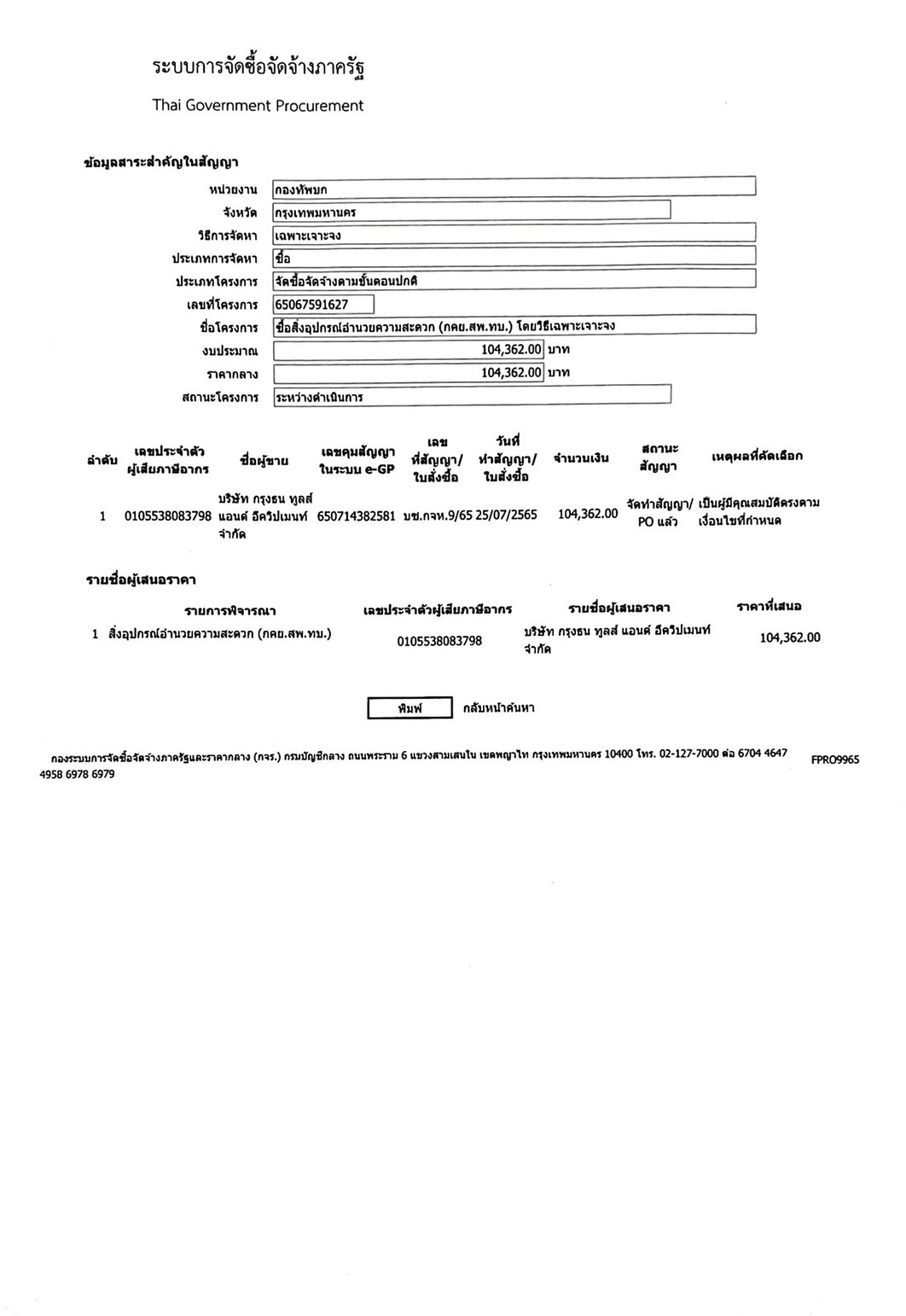 กองทัพบกโดยกรมสรรพาวุธทหารบก ขอประกาศเผยแพร่สาระสำคัญของสัญญาหรือข้อตกลงที่ได้ลงนามแล้วตามเอกสารที่แนบท้ายประกาศนี้