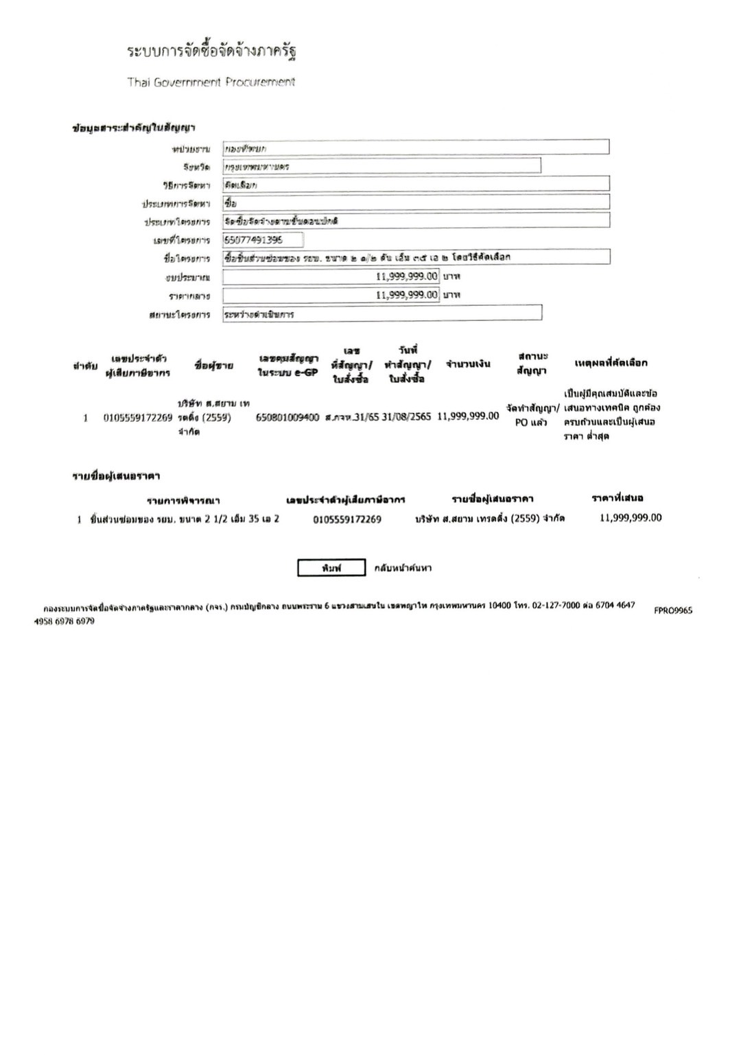 ตามพระราชบัญญัติการจัดซื้อจัดจ้าง และการบริหารพัสดุภาครัฐ พ.ศ. ๒๕๖๐ มาตรา ๙๘ กำหนดให้หน่วยงานของภาครัฐประกาศเผยแพร่สาระสำคัญของสัญญาหรือข้อตกลงที่ได้ลงนามแล้ว รวมทั้งการแก้ไขเปลี่ยนแปลงสัญญาหรือข้อตกลงในระบบเครือข่ายสารสนเทศของกรมบัญชีกลาง และหน่วยงานของรัฐตามที่กรมบัญชีกลางกำหนด