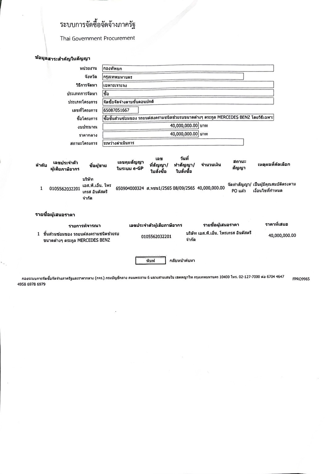 เรื่อง ชิ้นส่วนซ่อมของรถยนต์สงครามชนิด ช่วยรบขนาดต่างๆ ตระกูล MERCEDES BENZ จำนวน 8 ชนิดรถ