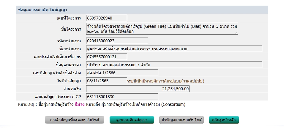 ตามพระราชบัญญัติการจัดซื้อจัดจ้าง และการบริหารพัสดุภาครัฐ พ.ศ. ๒๕๖๐ มาตรา ๙๘ กำหนดให้หน่วยงานของภาครัฐประกาศเผยแพร่สาระสำคัญของสัญญาหรือข้อตกลงที่ได้ลงนามแล้ว รวมทั้งการแก้ไขเปลี่ยนแปลงสัญญาหรือข้อตกลงในระบบเครือข่ายสารสนเทศของกรมบัญชีกลาง และหน่วยงานของรัฐตามที่กรมบัญชีกลางกำหนด