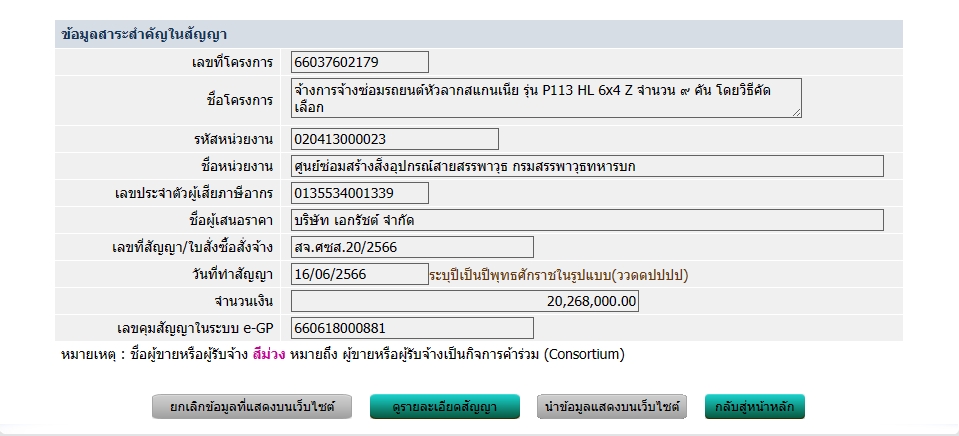 ตามพระราชบัญญัติการจัดซื้อจัดจ้าง และการบริหารพัสดุภาครัฐ พ.ศ. ๒๕๖๐ มาตรา ๙๘ กำหนดให้หน่วยงานของภาครัฐประกาศเผยแพร่สาระสำคัญของสัญญาหรือข้อตกลงที่ได้ลงนามแล้ว รวมทั้งการแก้ไขเปลี่ยนแปลงสัญญาหรือข้อตกลงในระบบเครือข่ายสารสนเทศของกรมบัญชีกลาง และหน่วยงานของรัฐตามที่กรมบัญชีกลางกำหนด
