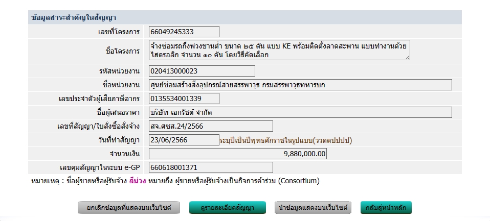 ตามพระราชบัญญัติการจัดซื้อจัดจ้าง และการบริหารพัสดุภาครัฐ พ.ศ. ๒๕๖๐ มาตรา ๙๘ กำหนดให้หน่วยงานของภาครัฐประกาศเผยแพร่สาระสำคัญของสัญญาหรือข้อตกลงที่ได้ลงนามแล้ว รวมทั้งการแก้ไขเปลี่ยนแปลงสัญญาหรือข้อตกลงในระบบเครือข่ายสารสนเทศของกรมบัญชีกลาง และหน่วยงานของรัฐตามที่กรมบัญชีกลางกำหนด