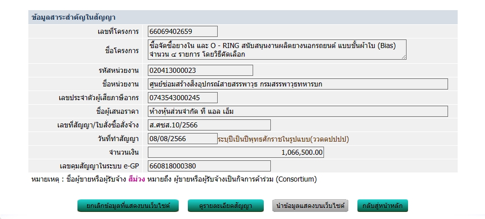 ตามพระราชบัญญัติการจัดซื้อจัดจ้าง และการบริหารพัสดุภาครัฐ พ.ศ. ๒๕๖๐ มาตรา ๙๘ กำหนดให้หน่วยงานของภาครัฐประกาศเผยแพร่สาระสำคัญของสัญญาหรือข้อตกลงที่ได้ลงนามแล้ว รวมทั้งการแก้ไขเปลี่ยนแปลงสัญญาหรือข้อตกลงในระบบเครือข่ายสารสนเทศของกรมบัญชีกลาง และหน่วยงานของรัฐตามที่กรมบัญชีกลางกำหนด