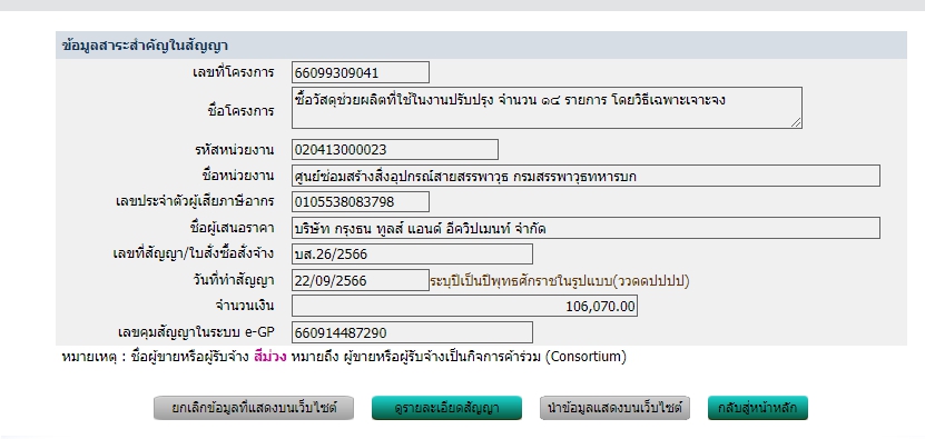 ตามพระราชบัญญัติการจัดซื้อจัดจ้าง และการบริหารพัสดุภาครัฐ พ.ศ. ๒๕๖๐ มาตรา ๙๘ กำหนดให้หน่วยงานของภาครัฐประกาศเผยแพร่สาระสำคัญของสัญญาหรือข้อตกลงที่ได้ลงนามแล้ว รวมทั้งการแก้ไขเปลี่ยนแปลงสัญญาหรือข้อตกลงในระบบเครือข่ายสารสนเทศของกรมบัญชีกลาง และหน่วยงานของรัฐตามที่กรมบัญชีกลางกำหนด