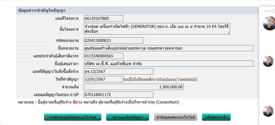 ตามพระราชบัญญัติการจัดซื้อจัดจ้าง และการบริหารพัสดุภาครัฐ พ.ศ. ๒๕๖๐ มาตรา ๙๘ กำหนดให้หน่วยงานของภาครัฐประกาศเผยแพร่สาระสำคัญของสัญญาหรือข้อตกลงที่ได้ลงนามแล้ว รวมทั้งการแก้ไขเปลี่ยนแปลงสัญญาหรือข้อตกลงในระบบเครือข่ายสารสนเทศของกรมบัญชีกลาง และหน่วยงานของรัฐตามที่กรมบัญชีกลางกำหนด