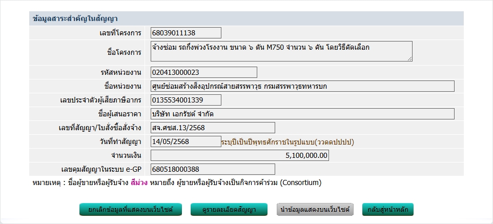 ตามพระราชบัญญัติการจัดซื้อจัดจ้าง และการบริหารพัสดุภาครัฐ พ.ศ. ๒๕๖๐ มาตรา ๙๘ กำหนดให้หน่วยงานของภาครัฐประกาศเผยแพร่สาระสำคัญของสัญญาหรือข้อตกลงที่ได้ลงนามแล้ว รวมทั้งการแก้ไขเปลี่ยนแปลงสัญญาหรือข้อตกลงในระบบเครือข่ายสารสนเทศของกรมบัญชีกลาง และหน่วยงานของรัฐตามที่กรมบัญชีกลางกำหนด
