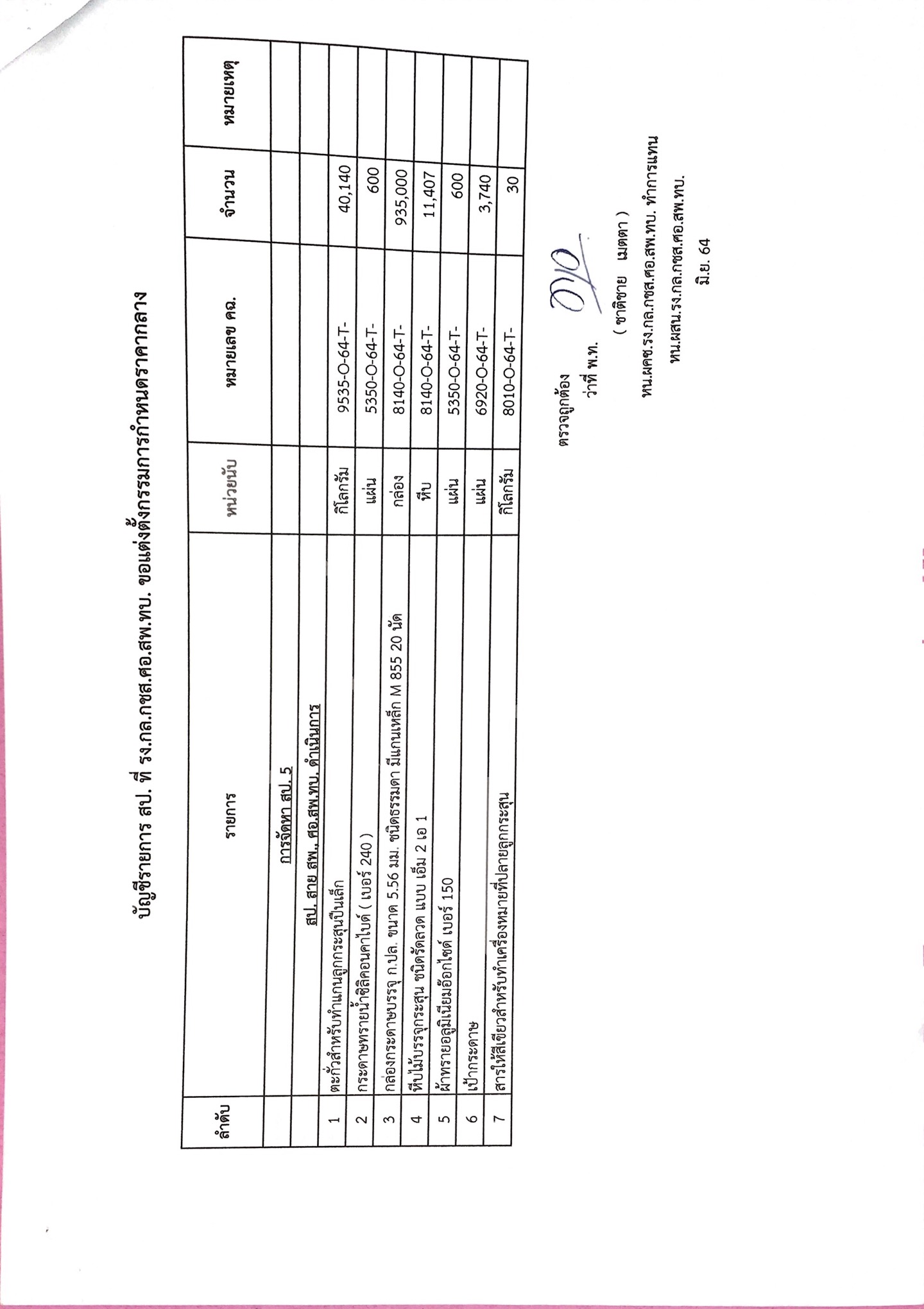 เรื่อง เชิญชวนเสนอราคาเพื่อกำหนดราคากลาง สป. สาย สพ.จำนวน ๗ รายการ เพื่อสนับสนุนงานผลิตกระสุนปืนเล็ก ขนาด ๕.๕๖ มม. ชนิดธรรมดา มีแกนเหล็กเอ็ม ๘๕๕ จำนวน ๑๓,๐๐๐,๐๐๐ นัด