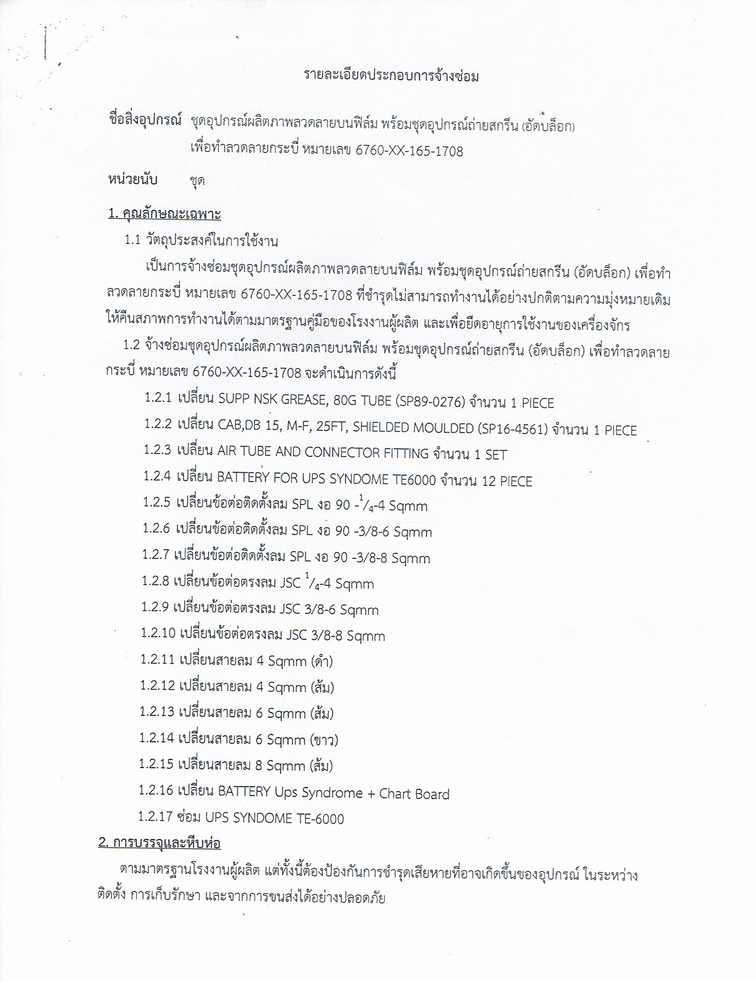 เรื่อง เชิญชวนเสนอราคาเพื่อกำหนดราคากลางสิ่งอุปกรณ์ สำหรับรายการจ้างซ่อมเครื่องจักร