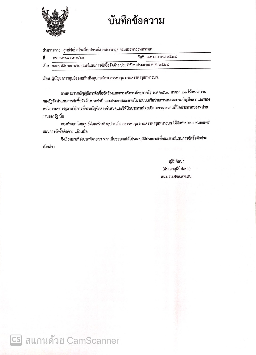 (ลงชื่อ) ส.ต.นราศักดิ์ บุญมา