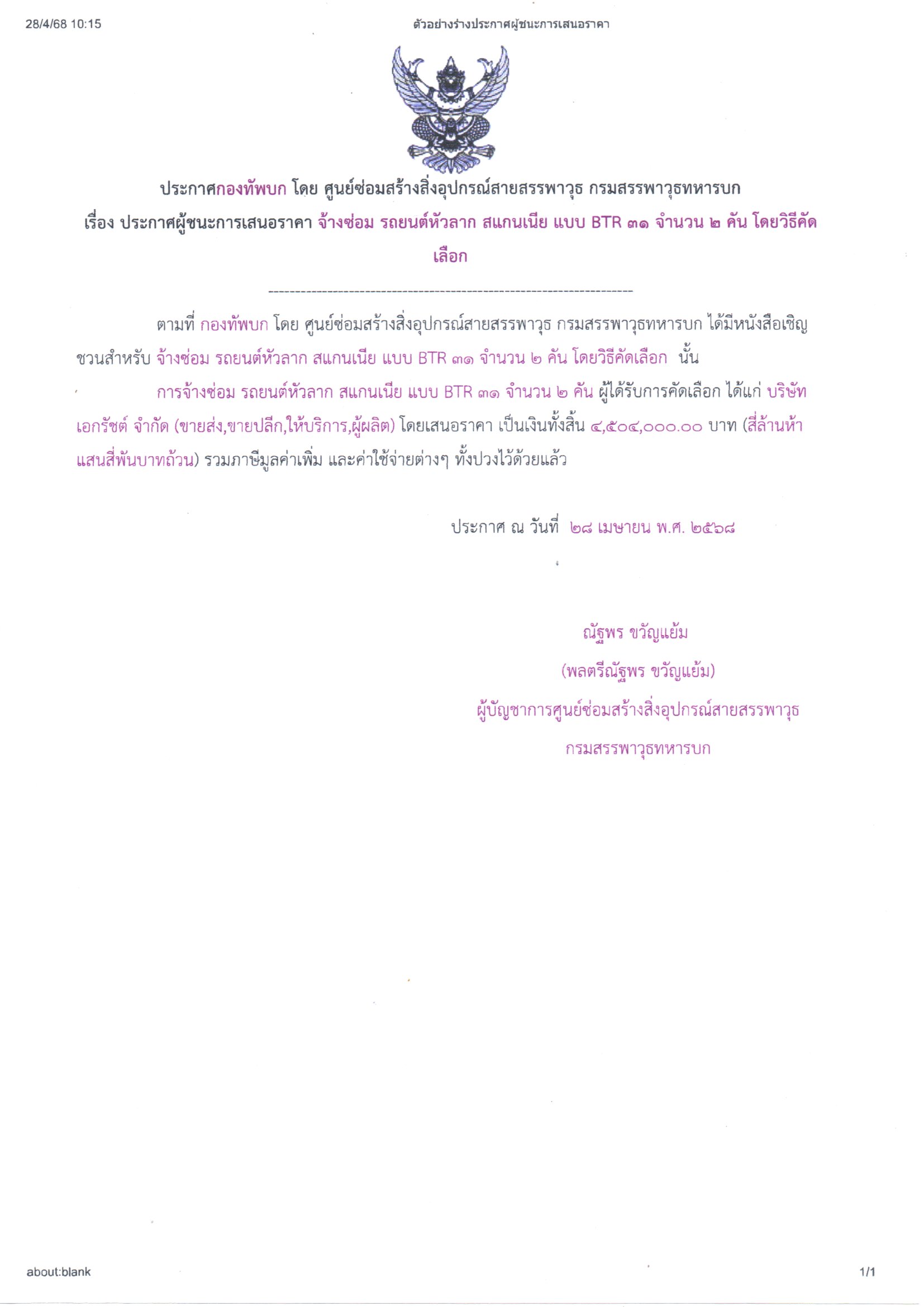 ประกาศ ณ วันที่ ๒๘ เมษายน ๒๕๖๘