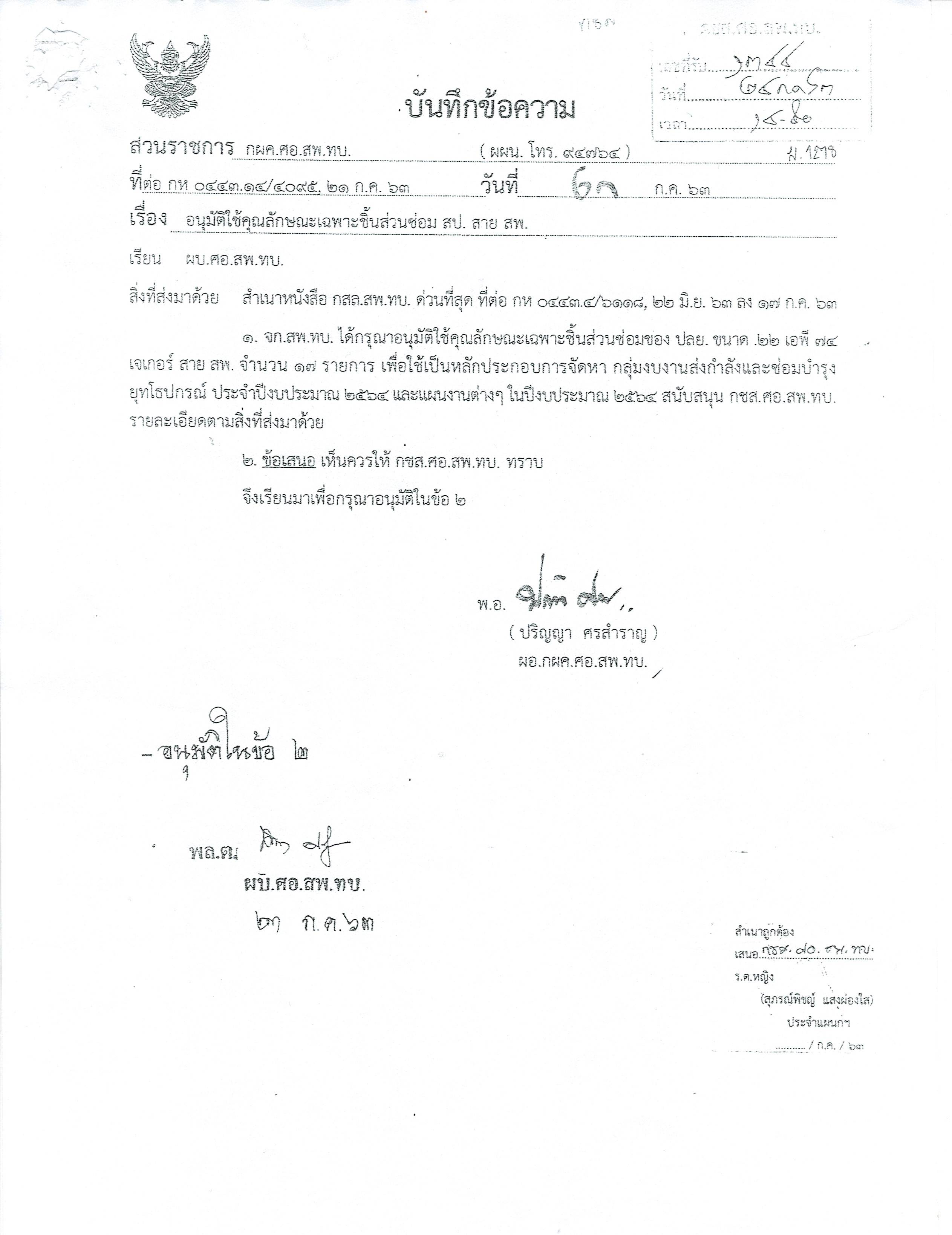 (ลงชื่อ) ร.ท.หญิงนภาภรณ์ พันธ์อยู่