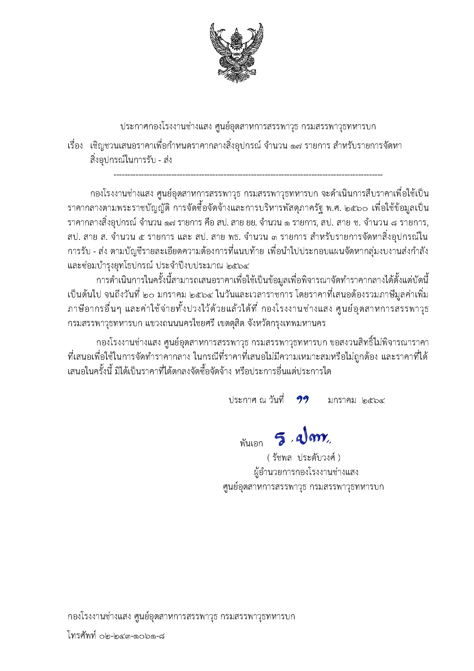 เรื่อง เชิญชวนเสนอราคาเพื่อกำหนดราคากลางสิ่งอุปกรณ์ จำนวน ๑๗ รายการ สำหรับรายการจัดหาสิ่งอุปกรณ์ในการรับ - ส่ง