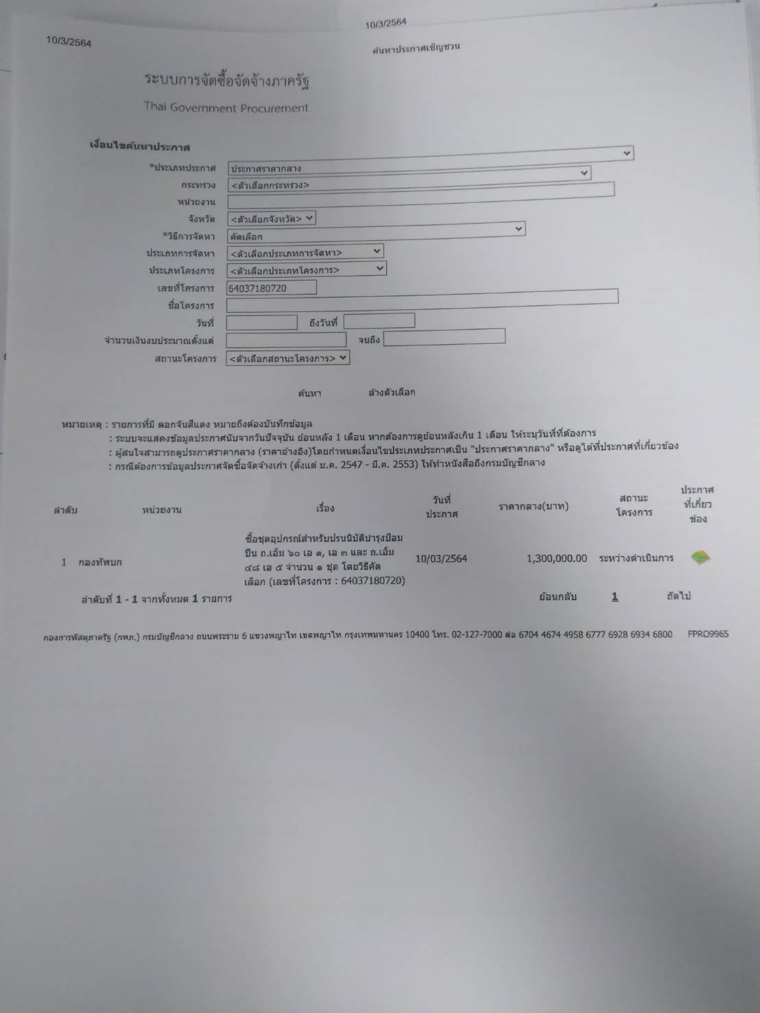1. ชื่อโครงการ จัดซื้อชุดอุปกรณ์สำหรับปรนนิบัติบำรุงป้อมปืน ถ.เอ็ม ๖๐ เอ ๑, เอ ๓ และ ถ.เอ็ม ๔๘ เอ ๕