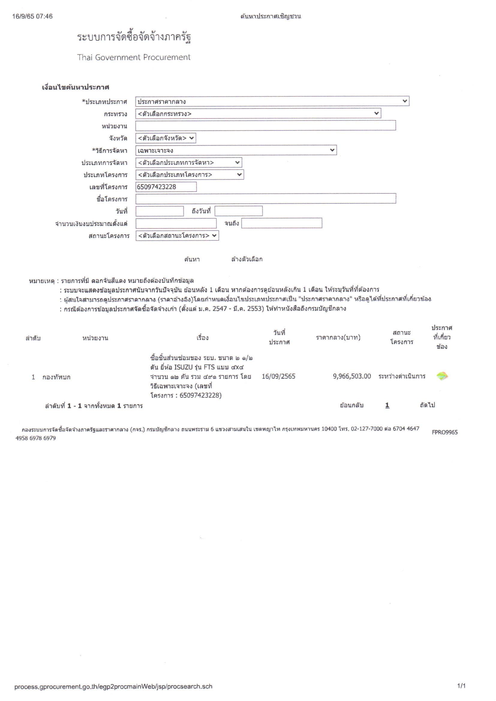 ๑. ชื่อโครงการ จัดซื้อชิ้นส่วนซ่อมของ รยบ. ขนาด ๒ ๑/๒ ตัน ยี่ห้อ ISUZU รุ่น FTS แบบ ๔x๔ จำนวน ๑๒ คัน