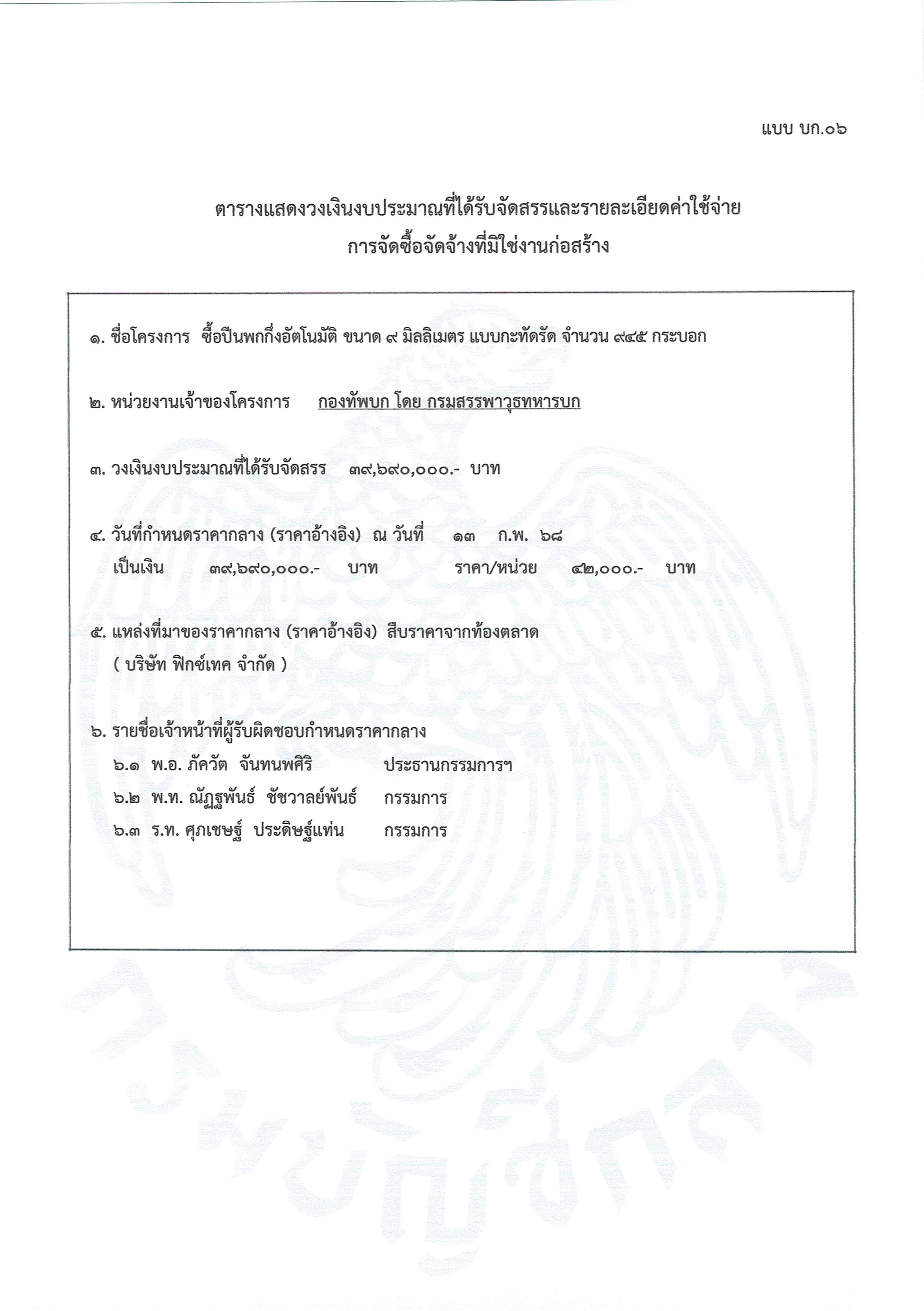 ๒. หน่วยงานเจ้าของโครงการ กองทัพบก โดย กรมสรรพาวุธทหารบก